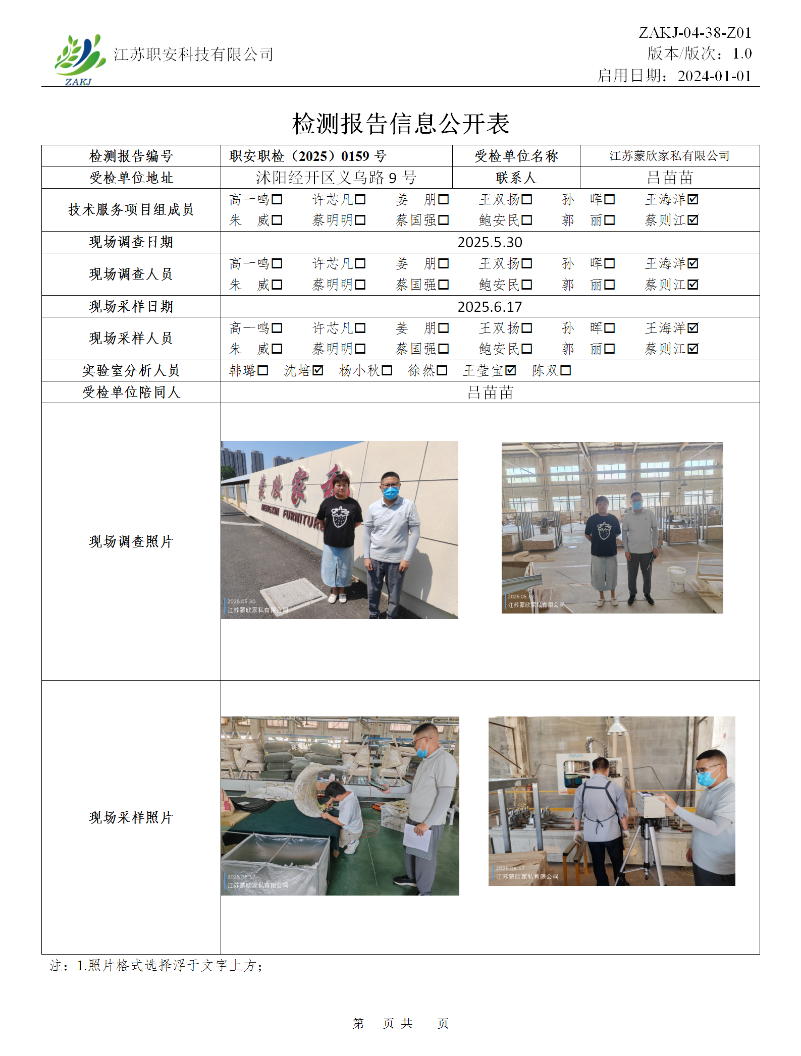 檢測報告公示