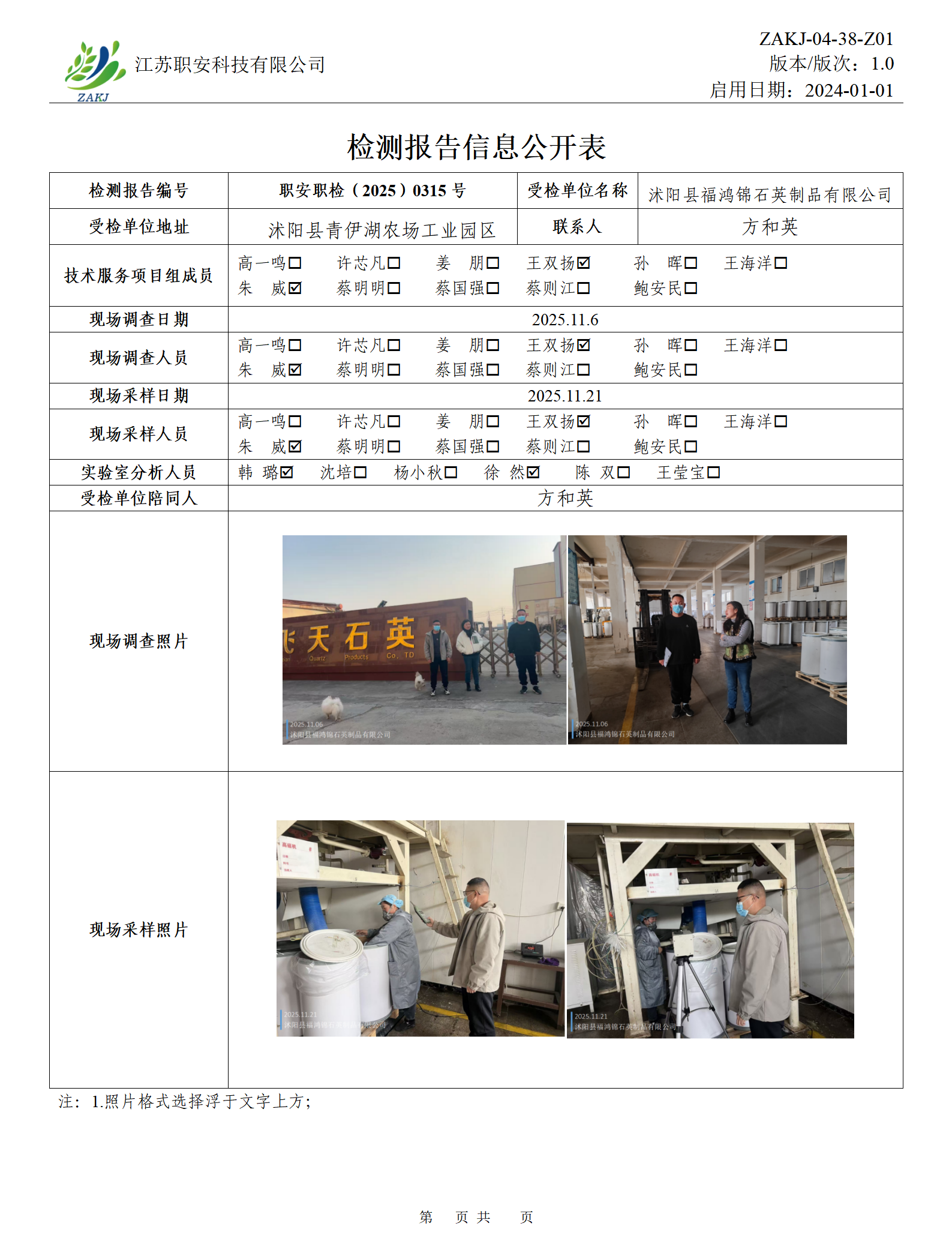 檢測報告公示