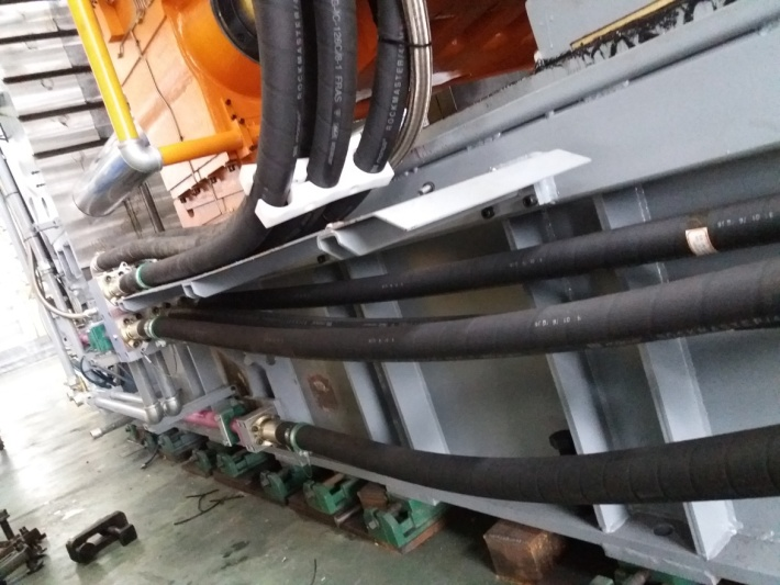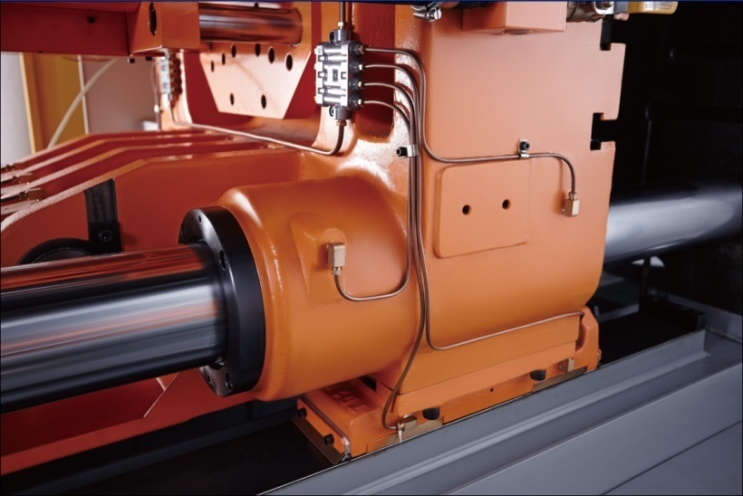 ①壓射系統(tǒng):采用儲能器容量加大型設(shè)計,強化系統(tǒng)壓射性能,減少系統(tǒng)壓降;配置更粗大的壓射系統(tǒng)油管,通流能力更強,響應(yīng)快速,且因壓力損失小,造成的油液升溫更小,能耗更低;拉桿加粗設(shè)計,確保剛性及模板平行度,增壓及壓射水平同向布局結(jié)構(gòu),提升壓射系統(tǒng)的穩(wěn)定性。